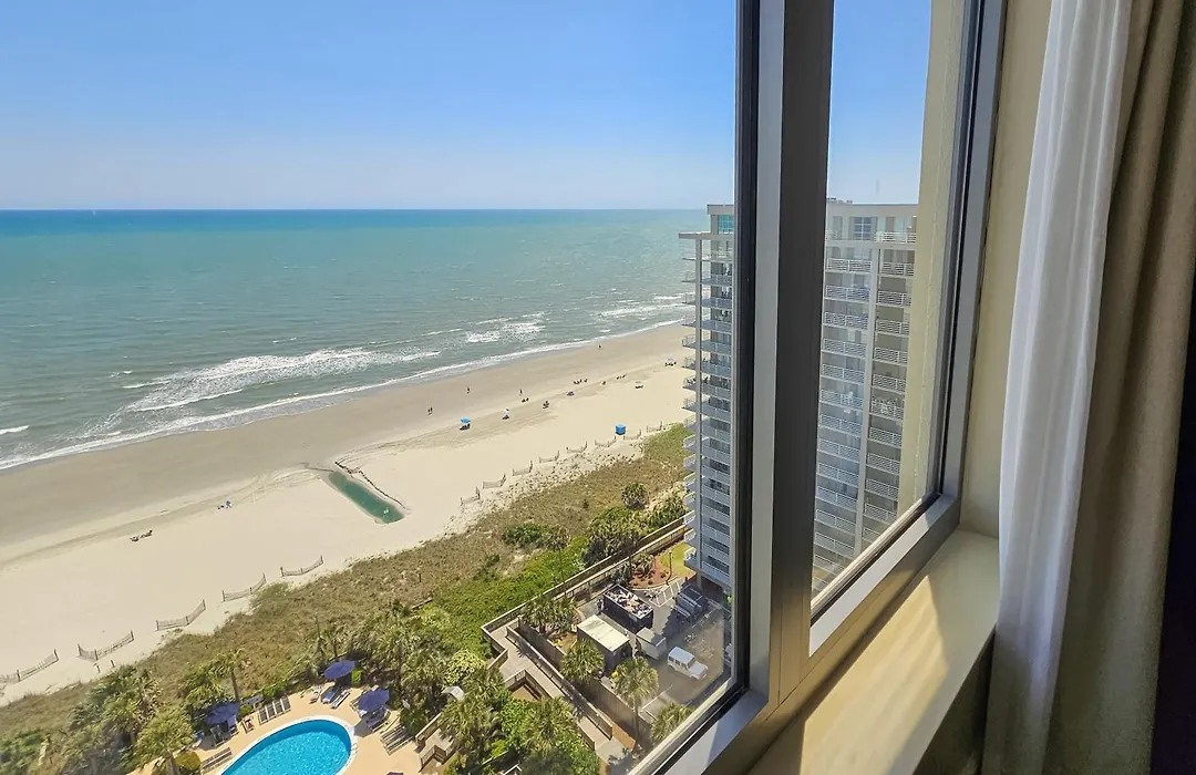 Ocean Front, 1602 Royale Palms, Full Amenities Condo provides an oven and a dishwasher in a fully-equipped kitchen. Myrtle Beach International airport lies at a 25 km from the 3-bedroom apartment. A heated pool can be found on the premises.